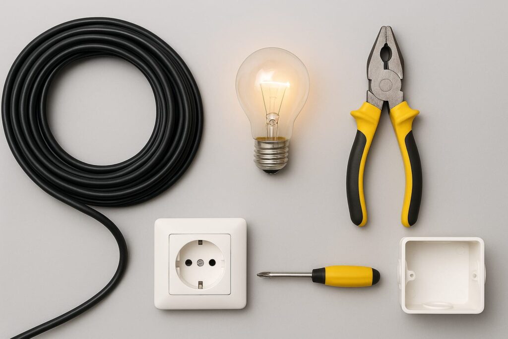 - التخطيط المسبق: رسم مخطط تفصيلي يحدد أماكن المصابيح والمفاتيح والمخارج، لضمان توزيع الطاقة بكفاءة وسهولة الوصول لجميع الأجهزة في المنزل.